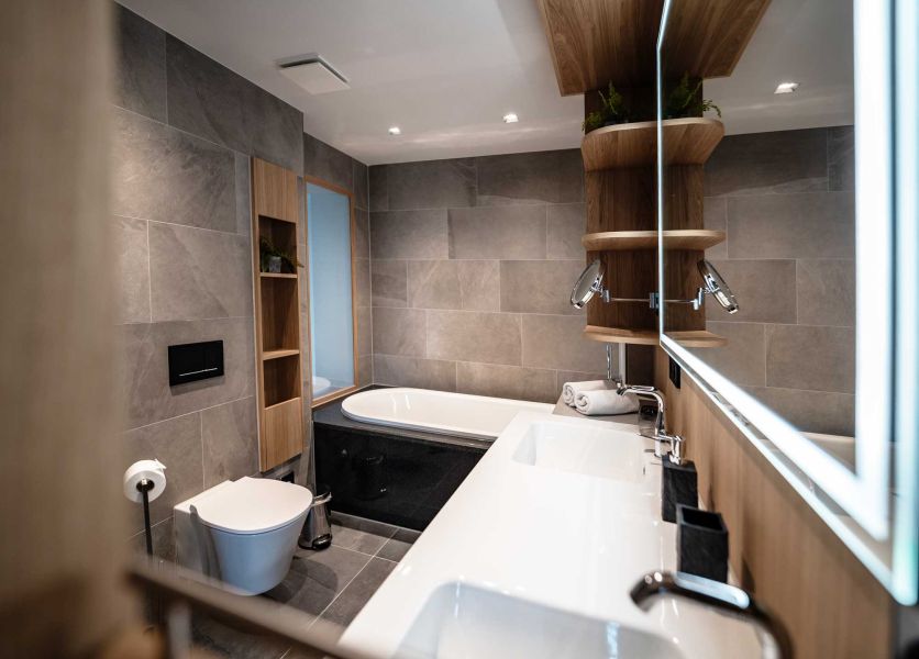 Tauchen Sie ein in die Welt des Luxus und der Großzügigkeit mit unseren einzigartigen Suiten im Kulmberghaus. Unsere Suiten bieten Ihnen nicht nur viel Platz, sondern auch einen atemberaubenden Fernblick, der Ihre Sinne verzaubern wird. Mit einem geräumigen Bad, das sowohl über eine Dusche als auch über eine Badewanne verfügt, können Sie Ihre persönliche Wellnessoase genießen.
